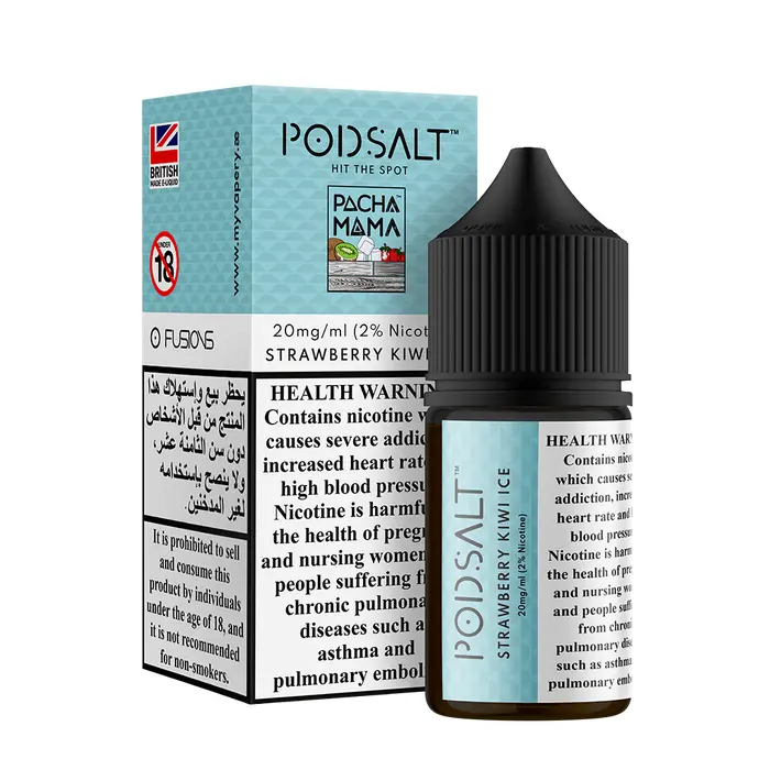 This Strawberry Kiwi Ice Nicotine Salt e-liquid is a Fusion collaboration by Pod Salt and Charlie’s Chalk Dust. An original and exclusive flavour for an all-day vaping experience.